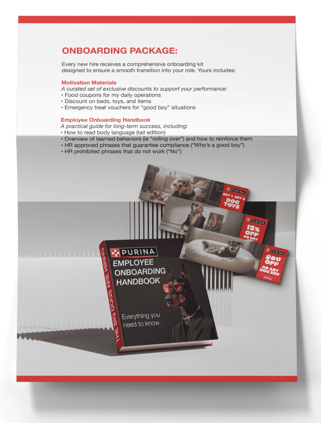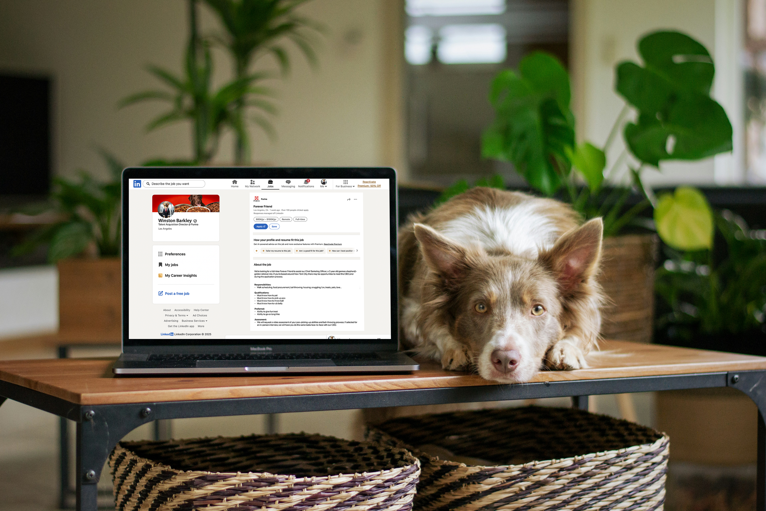 We’ve turned Purina’s LA office and partner shelters into our own offices. Our crates are cubicles, our beds are desks, we even have job plaques. So step right in with a treat for your in-person interview.