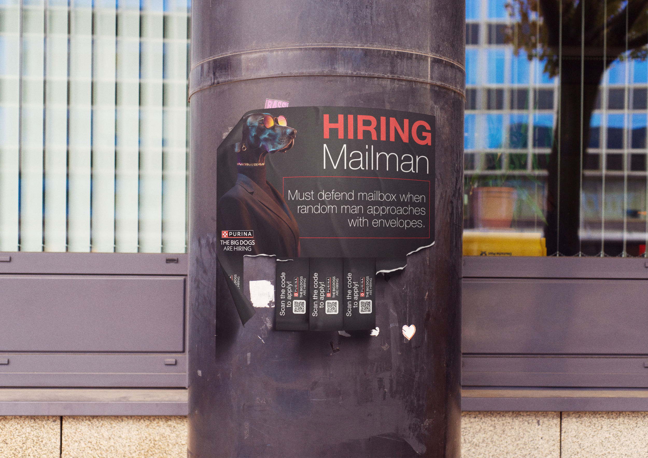 Across (human) parks, supermarkets, and street corners, Purina’s interactive  β€œHelp Wanted” posters will invite qualified humans to meet their potential new bosses face-to-snout.